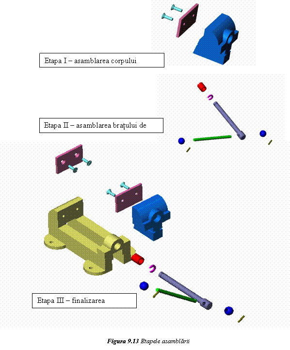 Fiecare componenta a asamblarii va fi colorata diferit pentru a se face o diferentiere clara a acestora si pentru a se sublinia forma fiecarui element īn parte.