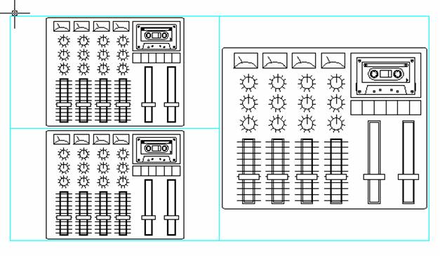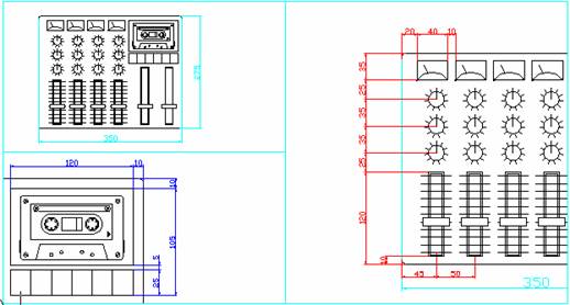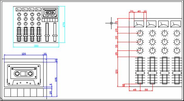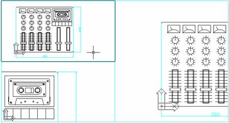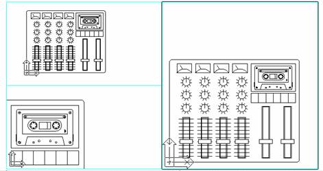10. Face\i activ[ fereastra din st]nga jos. Privind desenul de referin\[ pute\i observa c[ exist[ o vedere m[rit[ a mixerului ce permite dimensionarea detaliilor casetofonului.