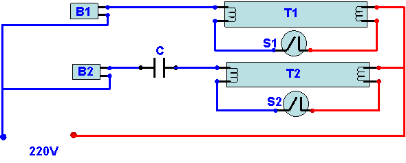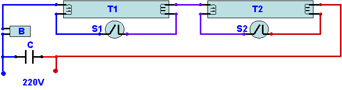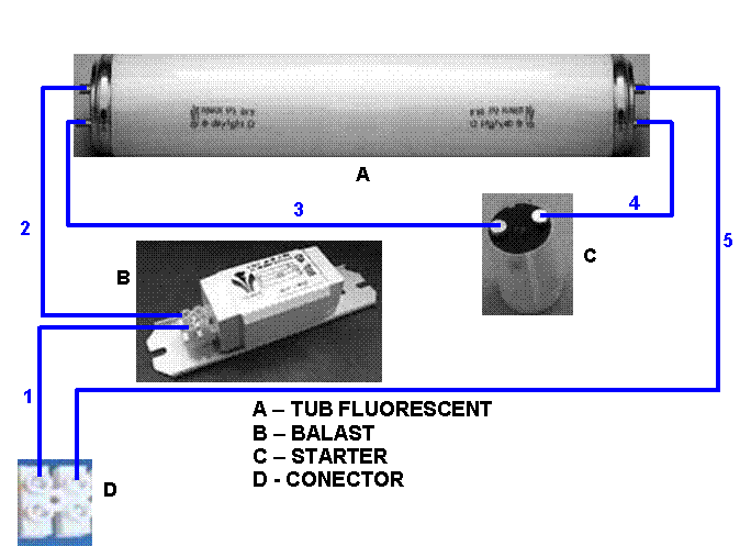 ROL Inchide circuitul de īncalzire a filamentelor tubului (cānd electrozii sunt īn contact), Fapt care favorizeaza modificarea fluxului magnetic al bobinei de ballast.