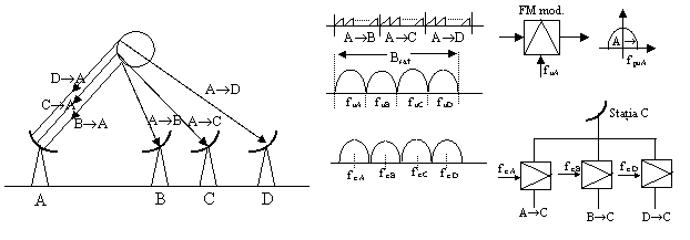 Utilizarea în comun de catre mai multe statii de sol a unui singur satelit prin diviziune frecventiala (FDMA) si temporala (TDMA) este prezentata în continuare :