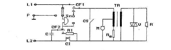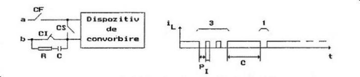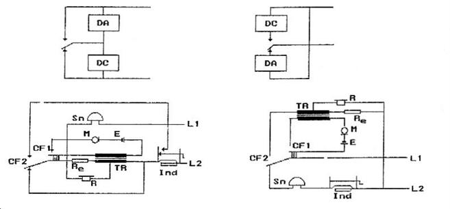 Dispozitvul de apel DA si dispozitivul de convorbire DC pot fi conectate la linia telefonica prin intermediul dispozitivului de comutatie (contactele furcii de apel CF).