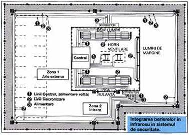 - Barierele in Infrarosu Activ : sunt ideale pentru intruziuni accidentale sau deliberate a perimetrului. Desi neobstructive, barierele AIR reprezinta alegerea ideala pentru aplicatiile de protectie a perimetrelor largi, avand o probabilitate mai mare de detectie si o imunitate mare la alarme false datorate fenomenelor meteorologice, insectelor, animalelor.
