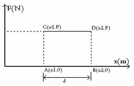 Observam ca lucrul mecanic efectuat de forta F ce actioneaza pe distanta d este egal cu aria dreptunghiului ABCD. În literatura internationala se specialitate, lucrul mecanic este notat cu W (de la work).