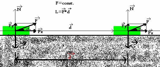 Consideram un corp de masa m, asupra caruia se actioneaza cu o forta F=const. pe distanta d, având aceeasi directie si sens cu deplasarea corpului. Corpul se va misca fara frecare pe directia si sensul axei Ox.