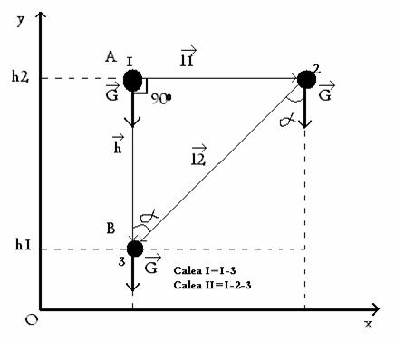 Alegem doua cai de parcurs din A în B a punctului material pentru a compara lucrul mecanic efectuat (LI fata de LII).