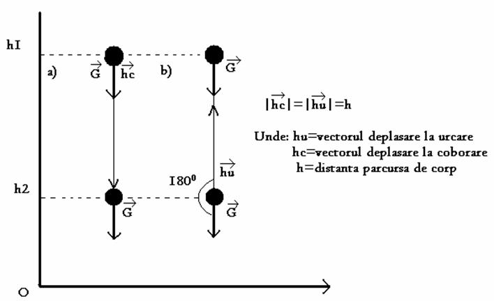 a) La coborâre se observa ca vectorul greutate are aceeasi directie si sens cu vectorul deplasare.