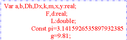 Prin instructiunea de mai jos am definit tipul variabilelor pe care le-am folosit în program. De asemenea am definit si doua constante: pi si g.