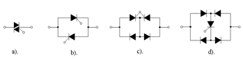 a).- triac; b).-doua tiristoare antiparalel; c).- doua tiristoare serie; d).- un tiristor in diagonala unei punti de diode