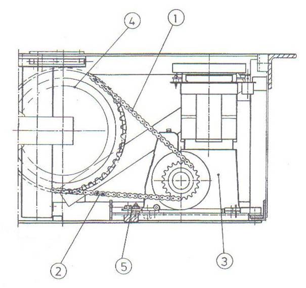 Lantul de actionare 626f57g este un lant duplex care transmite cuplul de actionare 626f57g axului principal (4)