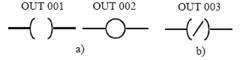 Fiecarei iesiri i se asociaza o singura bobina si unul sau mai multe contacte ce pot fi utilizate în schema în mod asemanator contactelor auxiliare ale contactoarelor si releelor.