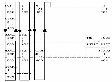 - Valideaza linia de program la dreapta elementului daca linia este validata în stânga acestuia si bitul corespunzator este în 0 logic