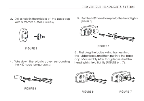 6. Intai introduceti mufa de cablaj in baza de cauciuc, apoi introduceti in capacul din spate de asamblare. Dupa aceasta, inchideti capacul farului incet. (FIGURA 6,7)