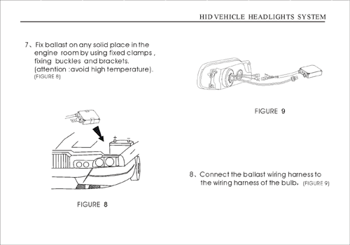 7. Fixati balastul pe orice loc solid din compartimentul motorului folosind cleme fixe, de fixare si suporturi. (atentie la a evita temperaturi inalte). (FIGURA 8).