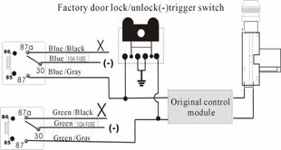 Wiring diagram (2) : The vehicle must have factory door lock Wiring diagram (4) For vehicle without re-installed door lock