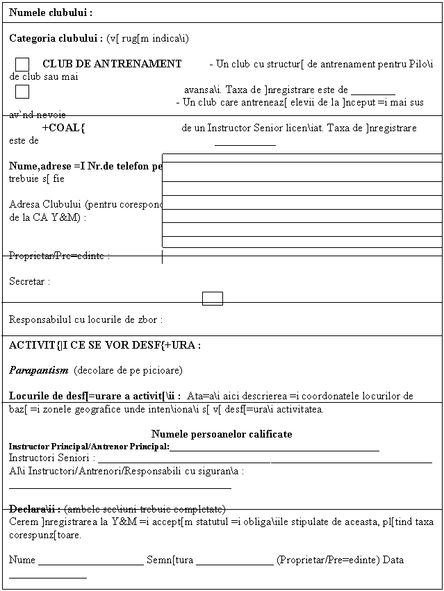 a. }nregistrarea unui club la CA Y&M nu creeaz[ un contract ]ntre CA Y&M, oficialii sau membrii s[i =i clubul ]nregistrat. Nu implic[ de asemenea nici o garan\ie din partea CA Y&M, oficialii sau membrii s[i c[tre un club ]nregistrat care ]ndepline=te toate cerin\ele necesare ]nregistr[rii, ori pentru orice instructor competent al unui astfel de club sau pentru echipamentul aprobat.