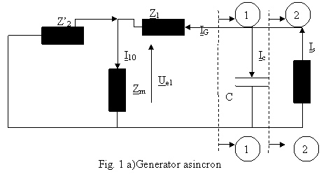 Observatie. Generatorul asincron are aceeasi alunecare ca si motorul de la problema precedenta (dar de valoare negativa) si, deci, impedanta echivalenta a generatorului Ze = - Re + jXe determina acelasi defazaj intre tensiune si curent ca si la motor, unde Ze = + Re + jXe