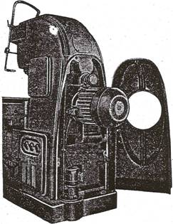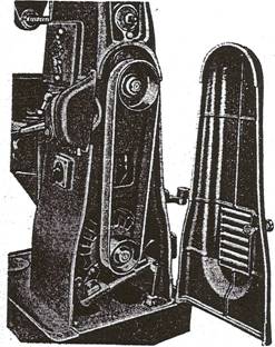 La sistemele de antrenare a cutiei de viteze prin transmisie cu curea, motorul se monteaza de obicei în partea inferioara a corpului masinii, sub cutia de viteze (fig. si 5 iar la actionarea cu motorul 1 de tip flansat, acesta se fixeaza de peretele din spate Spatiul paralelipipedic 2 de sub peretele transversal 3 al cutiei de viteze este rezervat instalatiei electrice. Echipamentul electric este montat pe un sasiu si poate fi tras în afara pentru a usura remedierea defectelor ce s-ar ivi în exploatare (fig. 6).