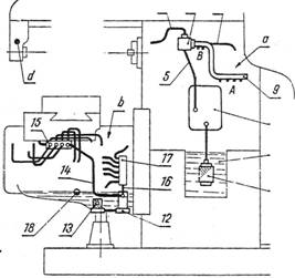 Controlul circulatiei uleiului se face prin indicatorul cu geam care primeste ulei de la distribuitorul 6 prin conducta 11.