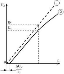 La functionarea in sarcina, caracterizata prin impedanta Zs, apare o abatere de la liniaritate a caracteristicii Ue = f (n), pe de o parte datorita faptului ca intervine reactia indusului si caderea de tensiune interna, iar pe de alta parte, datorita faptului ca tensiunea indusa si reactantele interne si de sarcina depind de viteza de rotatie, n.