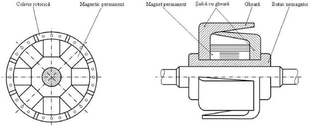Astfel, in cazul magnetilor din Alnico, datorita valorii scazute a intensitatii campului magnetic coercitiv, pentru a impiedica demagnetizarea rapida a acestora in cazul unor campuri de reactie puternice, s- a adoptat o varianta constructiva la care magnetii sunt dispusi pe coarda [1]. La o astfel de varianta constructiva, carcasa nu mai joaca un rol activ (de inchidere a liniilor de camp magnetic) putand fi realizata din aluminiu. In cazul utilizarii magnetilor din ferita, datorita inductiei remanente mici a acesteia, numarul de poli din masina este mult sporit, ajungand la o valoare, aproape, dubla fata de varianta utilizarii magnetilor din Alnico (uzual pentru ferita se utilizeaza 10÷12 poli, in timp ce pentru Alnico numarul de poli este limitat la 4÷8) [1], [2], [3].
