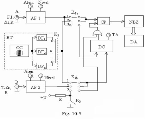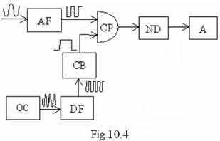 Pentru schema din fig. 10.1 semnificatia blocurilor este: AL - amplificator limitator; CD - circuit derivator si CBM - circuit basculant monostabil. Aceasta schema permite si masurarea frecventei unor impulsuri de scurta durata in comparatie cu perioada lor de repetitie.