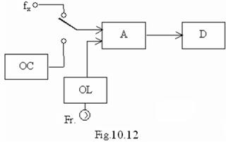 2) conversia de frecventa cu heterodinare consta in coborarea frecventei de intrare prin mixarea (amestecul) cu un semnal de frecventa usor diferita de frecventa de masurat si cunoscuta cu mare precizie, conform schemei din fig. 10.6.