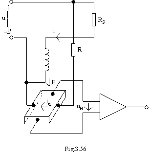 Cāmpul magnetic B este produs de o bobina parcursa de curentul de sarcina i, iar curentul prin sonda iu este proportional cu tensiunea de alimentare u. Daca exista o relatie liniara intre curentul de sarcina i si inductia B, si intre tensiunea u si curentul de comanda iu, se obtine: