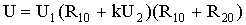 si cele doua tensiuni de multiplicat U1 si U2, iar variatia ?R este: