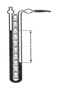 Cel mai simplu aparat pentru masurat presiunea este manometrul cu tub de sticla in forma de « U ». El consta dintr-un tub din sticla in forma de « U », umplut cu un lichid manometric (fig 21). Unul dintre brate se pune in legatura cu recipientul a carui presiune trebuie masurata, celalalt aflinu-se in legatura cu atmosfera. Daca presiunea din recipient este mai mare decit cea atmosferica, se va produce o denivelare a coloanelor de lichid care exprima valoarea presiunii din recipient.