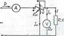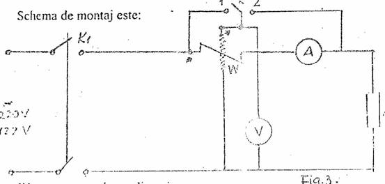 Cele trei instrumente de masurat se pot îega în circuit în montaj amonte (Fig. î.a) si în montaj aval (Fig. 1 .b) W