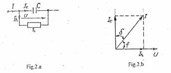 Considerând schema echivalenta a condensatorului fn paralel cu pier-dbile (f ;'g.2.a) si diagrama vectoriala corespunzatoare ei (Fig.2.b) se obtine: