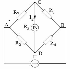 Fig. 9.6. Schema de principiu a puntii simple de curent continuu. |
