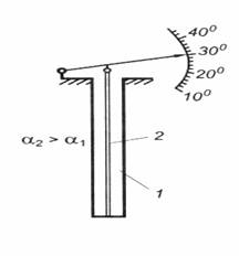 termometrul cu tija (fig 26) este compus din tubul 1, cu coeficient de dilatare ά1 si din tija 2, cu coeficient de dilatare ά2 mult mai mare decit ά1. introducind termometrul in mediul a carui temperatura o masuram, tija se va dilata si va deplasa acul indicator pe scara gradata. Diferenta de dilatare optima se poate obtine daca, de exemplu, tubul este din portelan iar tija din aluminiu.