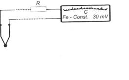 Cele mai utilizate materiale sunt : platina, cuprul, nichelul si fierul. In figura 30 este reprezentata schema unui termometru cu rezistenta electrica.