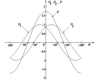 Fig.A.13.1. Variatia puterilor P , P indicate de doua wattmetre,