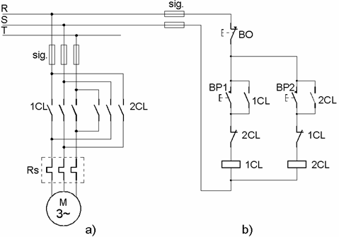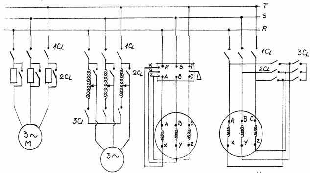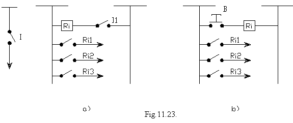 c) Aparate electrice de amplificare ; pe lânga amplificarea curentului (sau a puterii ) de comanda ( în cazul servomecanismelor ) este necesara si multiplicarea unor informatii sau comenzi. Este cazul folosirii unor relee intermediare care au mai multe perechi de contacte ce permit multiplicarea pozitiei unui aparat electric de conectare, fig.11.23.a, sau a unei comenzi, fig.11.23. b.