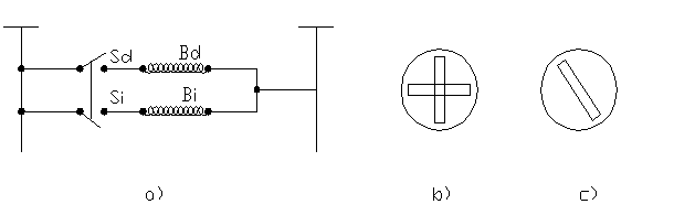 pozitie perpendiculara pe prima, fig. 11.24.b. Când nici o bobina nu este sub tensiune lamela indicatoare se pozitioneaza la 450 , fig. 11.24.c.