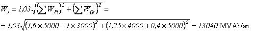 Din tabelul 4, pentru r=2%/an si o crestere in salt de 2,5 ori (3,75 MVA/1,5 MVA) in anul ts=2, se deduce Krs=3,23.