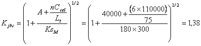 Coeficientul pentru determinarea numarului economic de circuite in cazul studiat, in care fiecare circuit se prevede cu cate 6 celule se determina cu relatia (6.6.b) si datele din tabelele anexei 2:
