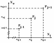 grafica sau tabelara- a corespondentei sntre Xe si Xi,