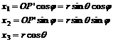 unghiul j I [o, 2p) dintre axa Ox1 si proiectia razei vectoare in planul x1Ox2, OP’;