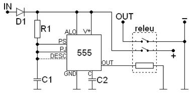 Functionare: pe intrare primeste un impuls pozitiv scurt (cateva zeci de milisecunde) si pune masa la iesire timp de 12 secunde (cu valorile date mai sus), ceea ce este necesar pentru actionarea geamurilor. Dupa acest timp, releul taie de tot alimentarea montajului.