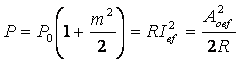 Presupunem ca semnalul MA obtinut folosind drept semnal modulator un semnal sinusoidal este, de exemplu, o tensiune aplicata la bornele unei rezistente R. Puterea disipata de acest semnal pe R va fi data de suma puterilor disipate de fiecare componenta spectrala pe rezistenta R, adica rezulta: