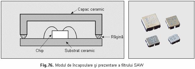 Din punct de vedere constructiv, filtrul este asezat pe un substrat ceramic (fig. 76 ) peste care se fixeaza cu rasina un capac, de asemenea ceramic, iar totul este īnchis īntr-o capsula metalica, permitānd accesul la terminale.
