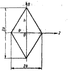 Sa se calculeze momentele de inertie Iz si Iy pentru rombul din figura 2. Se vede ca rombul poate fi privit ca rezultānd din patru triunghiuri dreptunghice. Pentru un triunghi, formulele de mai jos dau: