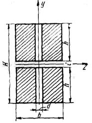 4. Sa se calculeze momentul de inertie fata de axa Oz la sectiunea alcatuita din doua grinzi de lemn suprapuse, avānd un interspatiu I si fiind slabite de un bulon cu diametrul d (figura 4).