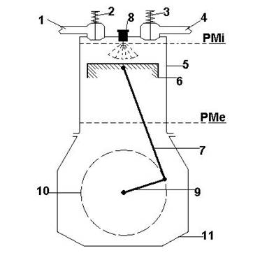 in PMe, eliminandu-se gazele reziduale ramase in cilindru prin supapa