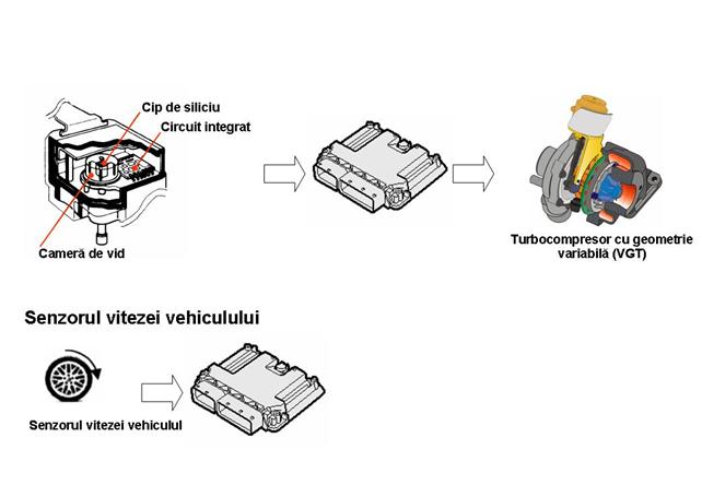 Senzorul presiunii atmosferice: Senzorul presiunii atmosferice detecteaza presiunea aerului pentru a obtine informatii despre densitatea acestuia. Este montat in modulul de control al motorului.