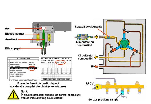Testul de stare a hidraulicii sistemului (circuitul de inalta presiune): urmatoarele informatii ne permit sa verificam capacitatea reala a sistemului de a genera inalta presiune necesara: