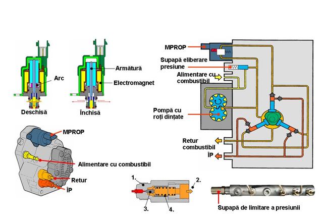 Înalta presiune este creata prin comprimarea combustibilului din pompa de inalta presiune.